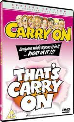 | THAT'S CARRY ON"Essential...The Ultimate CARRY ON Compilation!"IT'S CARRY ON'S ALL-TIME GREATEST BITS!Kenneth Williams and Barbara Windsor are your hosts for this hilarious celebration of favourite moments from twenty-eight CARRY ON classics, including CARRY ON DOCTOR, CARRY ON NURSE, CARRY ON UP THE KHYBER, FOLLOW THAT CAMEL, CARRY ON CONSTABLE, CARRY ON SPYING, CARRY ON CABBIE, CARRY ON CLEO, CARRY ON COWBOY, CARRY ON SCREAMING, CARRY ON JACK, CARRY ON SERGEANT and many more, starring such beloved cast members as Sid James, Joan Sims, Jim Dale, Kenneth Connor, Charles Hawtrey, Bernard Bresslaw, Hattie Jacques, Peter Butterworth and beyond.Stop messin’ about and get ready for a wild ride filled with laughter and memories from the most successful and best-loved series in British movie history. That’s more than just the promise of one cheeky good time...THAT’S CARRY ON! |