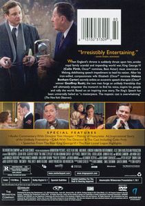 | When England's throne is suddenly thrust upon him, amidst royal family scandal and impending world war, King George VI (Colin Firth, Oscar® nominee, Best Actor) must overcome a lifelong, debilitating speech impediment to lead his nation. After his iron-willed, compassionate wife Elizabeth (Oscar® nominee Helena Bonham Carter) secretly enlists an eccentric speech therapist (Oscar® winner Geoffrey Rush), the two men forge an unlikely friendship that will ultimately empower the monarch to find his voice, inspire his people and rally the world. Based on an inspiring true story, The King's Speech has been universally hailed as "a masterpiece. The majestic cast is overwhelming" (The New York Observer). |