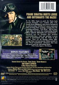| As the Allies begin to push the Nazis back toward Germany, U.S. combat pilot Col. Joseph Ryan (Sinatra) is shot down and placed in a prison camp. Initially, he's more concerned with surviving than escaping, earning him the insulting nickname, "Von Ryan." But in time, Ryan takes over form the commanding British officer (Trevor Howard) and masterminds a daredevil race for freedom that involves commandeering a train and getting it across Italy to Switzerland with the Nazis in hot pursuit. Then it's all blazing action, hair-raising chases and spectacular Italian scenery in this Oscar®-nominated adventure that runs full speed until the nail-biting finale! |