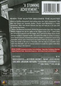 | WHEN THE HUNTER BECOMES THE HUNTEDBased on Geoffrey Household's best-selling novel, this "grim, suspensful" (The New York Times) and "dramatic thriller" (Pacific Coast Musicians) is a "vastley compelling" (New York Herald Tribune) ride that will hold you in its grip until its riveting final frame.Deep in the Bavarian mountains, British big-game hunter Capt. Alan Thorndike (Walter Pidgeon) has set his sights on the biggest prize of all - Adolf Hitler. But just as he is about to pull the trigger, he is captured by Major Quive-Smith (George Sanders) a Gestapo leader, who wants Thorndike to confess to being a hired British assassin. Knowing the political dangers a confession would bring, Thorndike refuses and is tortured to near death before he manages to escape. Soon the hunter is the prey as Thorndike, with the help of a beautiful street waif (Joan Bennett), uses his animal instincts to evade his captors while their very lives hang in the balance! |