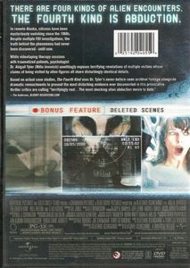 | In remote Alaska, citizens have been mysteriously vanishing since the 1960s. Despite multiple FBI investigations, the truth behind the phenomena had never been discovered–until now. While videotaping therapy sessions with traumatized patients, psychologist Dr. Abigail Tyler (Milla Jovovich) unwittingly exposes terrifying revelations of multiple victims whose claims of being visited by alien figures all share disturbingly identical details. Based on actual case studies, The Fourth Kind uses Dr. Tyler's never-before-seen archival footage alongside dramatic reenactments to present the most disturbing evidence ever documented in this provocative thriller critics are calling "terrifyingly real ..The most shocking alien abduction movie to date." – Tim Anderson, Bloody-Disgusting.com |