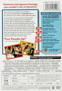 Special Making of American Pie 2 Hilarious Outtakes and Deleted Scenes Jason Biggs Warning: Don't Try This At Home! Star Screen Tests From the Original American Pie Behind-The-Scenes Craziness with Stars Viewers' Top Ten Scenes Classic Movie Lines 3 Doors Down "Be Like That" Music Video and Music Highlights Commentaries with the Director, Writer and Cast Members Film Production Notes and Filmmaker Bios Access More Features on Your DVD-ROM |