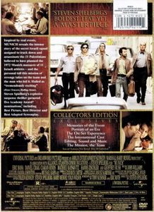 30-Page Photo BookAn Introduction By Steven SpielbergFeaturettes/Documentaries:Munich: The Mission, The TeamMunich: Memories Of The Event: Explore And Discover The Impact Of The Real Events In Munich Through Documentary Footage, Film Clips, BTS Moments And All New Interviews With Cast & Crew Including Steven SpielbergMunich: Portrait Of An Era: The Re-Creation Of The 70’s With Production Designer Rick Carter & Costume Designer Joanna JohnstonMunich: The On-Set Experience: A Moving And Intricate Exploration Into The Art And The Politics Involved With The Making Of MunichMunich: The International CastMunich: Editing, Sound And Music: A Discussion With Steven Spielberg And His Collaborators, Composer John Williams & Editor Michael Kahn On The Final Touches That Will Be Added To Munich With Editing, Music And Sound |