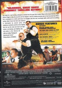 | Get ready for a gut-busting, outrageous comedy from the guys that created 'Shaun of the Dead'. Nicholas Angel (Simon Pegg) is a big-city cop who can't be stopped - but he's making everyone else on the force look bad. When he is reassigned to a small, quiet town, he struggles with this new, seemingly idyllic world and his bumbling partner (Nick Frost). But their dull existence is interrupted by several grisly and suspicious accidents, and the crime-fighting duo turn up the heat and hand out high-octane, car-chasing, gun-fighting, big-city justice in this hilarious hit critics are calling "Outrageous! Uproariously funny!" (Thelma Adams, 'US WEEKLY'). |