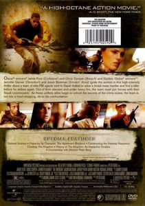 | Oscar winners Jamie Foxx ('Collateral') and Chris Cooper ('Breach') and Golden Globe® winners Jennifer Garner ('Daredevil') and Jason Bateman ('Smokin' Aces') ignite the screen in this high-intensity thriller about a team of elite FBI agents sent to Saudi Arabia to solve a brutal mass murder and find a killer before he strikes again. Out of their element and under heavy fire, the team must join forces with their Saudi counterparts. As these unlikely allies begin to unlock the secrets of the crime scene, the team is led into a heart-stopping, do-or-die confrontation. |