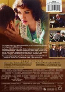 | Clint Eastwood directs Oscar® winner† Angelina Jolie and Oscar® nominee‡ John Malkovich in a riveting and unforgettable true story.Los Angeles, 1928. When single mother Christine Collins (Jolie) leaves for work, her son vanishes without a trace. Five months later, the police reunite mother and son; but he isn´t her boy. Driven by one woman´s relentless quest for the truth, the case exposes a world of corruption, captivates the public and changes Los Angeles forever.This emotionally gripping story illustrates the profound power of a mother´s love in "a mesmerizing film that burns in the memory" (Peter Travers, Rolling Stone).†Angelina Jolie, Best Supporting Actress, 1999 Girl, Interrupted‡John Malkovich, Best Supporting Actor, 1984 Places in the Heart, 1992 In the Line of Fire |