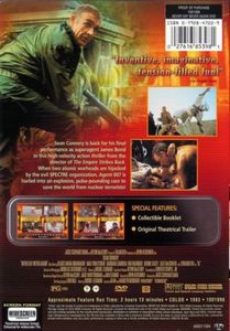 | Sean Connery is back for his final performance as superagent James Bond in this high-velocity action thriller from the director of 'The Empire Strikes Back'. When two atomic warheads are hijacked by the evil SPECTRE organization, Agent 007 is hurled into an explosive pulse-pounding race to save the world from nuclear terrorists! |