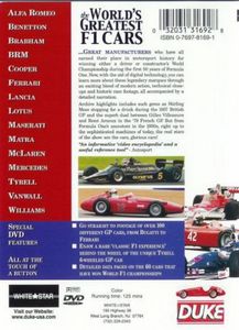 | World Championship - Winning Cars The Full, Interactive Video… Great Manufacturers who have all earned their place in motorsport history for winning either a driver or constructor's World Championship during the first 50 years of Formula One. Now, with the aid of digital technology, you can learn more about these legendary marques through an exciting blend of modern action, technical closeups and historic race footage, all accompanied by a detailed narration.Archive highlights includes such gems as Stirling Moss stopping for a drink during the 1957 British GP and the superb duel between Gilles Villeneuve and Rene Arnoux in the '79 French GP. But from Formula One's ancestors in the 1930s, right up to the sophisticated machines of today, the real stars of the show are the cars, glorious cars! |