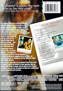 After choosing "Otnemem" from the Special features section, go to the top of the screen until the word "questions" in the headline is highlighted by an underline and and exclamation point. Choose it and you will be taken to a note that asks "Who did I kill?" Highlight the right arrow and you will be taken to another screen with a list of names. Choose the victim's name (Teddy) and you will see the credits for the DVD. Also, in the "Biographies" section under Special Features, for a brief moment in the actors' bios it says their characters name instead of their real name, while in Nolan's bio it says Memento backwards. There is also something in the Tattoo gallery. When you reach the tattoo for John G's license plate, select the picture and then press the up button and you will see a picture of the license plate. Pressing the up button on some of the other pictures for the other tattoos will give you different angles for those tattoos as well. Watch The Movie all the way through and let it go back to the main menu. From there, all Menus are backwards and in reverse. |