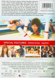 | While still in his teens, Donny (Adam Sandler) fathered a son, Todd (Andy Samberg), and raised him as a single parent until Todd's 18th birthday. Now, after not seeing each other for years, Todd's world comes crashing down on the eve of his wedding when an uninvited Donny suddenly shows up. Trying desperately to reconnect with his son, Donny is now forced to deal with the repercussions of his bad parenting skills. C0-starring Leighton Meester and featuring incredible cameos from a cavalcade of stars including Vanilla Ice, Susan Sarandon and James Caan. |