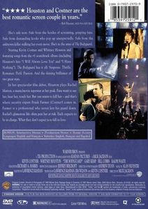 | She's safe now. Safe from the hordes of screaming, grasping fans. Safe from demanding kooks who pop up unexpectedly. Safe from the unknown killer stalking her every move. She's in the arms of 'The Bodyguard'. Starring Kevin Costner and Whitney Houston and featuring songs from the #1 soundtrack album (including Houston's hits "I Will Always Love You" and "I Have Nothing"), 'The Bodyguard has it all: Suspenses. Thrills. Romance. Peril. Passion. And the shining brilliance of two great stars.In her spectacular film debut, Whitney Houston plays Rachel Marron, a music/movie superstar at her peak. Fans want to see her, hear her, touch her. But one wants to kill her - and that's where security expert Frank Farmer (Costner) comes in. Farmer is a professional who never lets his guard down. Rachel's glamorous life often puts her at risk. Each expects to be in charge. What they don't expect is to fall in love. |