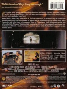 | World-traveling National Geographic photographer Robert Kincaid and Iowa housewife Francesca Johnson aren't looking to turn their lives upside down. Each is at a point in life where expectations are behind them. Yet four days after meeting, they won't want to lose the love they've found. Academy Award winners Meryl Streep (earning her 10th Oscar nomination for this performance) and Clint Eastwood (who also produces and directs) bring blazing starpower and powerful conviction to the beloved characters of Robert James Waller's rhapsodic bestseller of love, choice and consequence. "Streep and Eastwood are so visually and spiritually right they seemed to have walked right off the page." 'Entertainment Weekly' proclaims. Also right are the small details and large emotions of once-in-a-lifetime love. With luck, a love like this happens to some of us sooner or later. For Robert and Francesca, it was later. And it was glorious. |