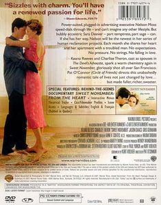 | Power-suited, plugged-in advertising executive Nelson Moss speed-dials through life - and can't imagine any other lifestyle. But bubbly eccentric Sara Deever - part temptress, part sage - can.If she has her way, Nelson will be the newest in her series of human reclamation projects. Each month she shares her heart and her apartment with a troubled man. No expectations. No pressure. No strings. No falling in love.Keanu Reeves and Charlize Theron, cast as spouses in 'The Devil's Advocate', spark a warm chemistry again in 'Sweet November', gloriously shot all over San Francisco. Pat O'Connor ('Circle Of Friends') directs this unabashedly romantic tale of lives not just changed by love...but made fuller, richer, sweeter. |