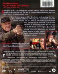 | Getting the goods? Easy. Getting away after the robbery? Veteran thief Joe Moore knows that's always the hard part. But he soon discovers that getting away from a life of crime is the hardest escape of all.Gene Hackman plays cool-fire Joe, Delroy Lindo portrays his longtime sidekick and Danny DeVito plays the manipulative fence who saddles Joe with one last, difficult job in this ensemble-driven caper centered on an elaborate, split-second snatching of gold ingots by Joe and his crew. Writer/director David Mamet prowls the unsentimental avenues of film noir in a story rife with double-cross, triple-cross and trademark Mamet dialogue. For edgy, synapse-searing entertainment, go where the money is: 'Heist'. |