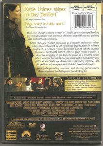 | From the Oscar®-winning writer of "Traffic" comes this spellbinding psychological thriller with ingenious plot twists that will keep you guessing until its electrifying conclusion.Katie Holmes ("Wonder Boys") stars as a beautiful and success-driven college student haunted by the mysterious disappearance of a former boyfriend, a brilliant young composer named Embry (Charlie Hunnam), Benjamin Bratt ("Piñero") plays Wade Handler, a detective struggling to put back the pieces of his troubled career. When someone tied to Embry's past starts leaving clues, Embry's ex-girlfriend and Wade are drawn into a harrowing mystery-and plunged into an inescapable web of desire, deceit and murder.With pulse-pounding suspense and riveting performances. "Abandon" delivers the thrills you've been looking for. |