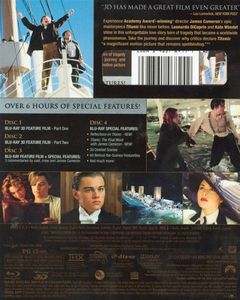 Audio Commentary: James Cameron (from 2005). Though not necessarily a fan of audio commentary tracks, Cameron speaks on the film for the benefit of its many fans. He begins the track with discussions of the opening titles and the making of the underwater footage, which includes both simulated and real images. He follows by speaking on the picture's themes, the cast, the exhaustive research and attention to detail present in the film, minor inaccuracies, real Titanic history and the remaining mysteries surrounding the sinking, the massive digital effects, the picture's sets, and plenty more. There are also a wide array of anecdotes, minor insights that really fill in some of the small and ultra-specifics secrets from the making of the movie. His track is fast-paced, very thorough, quite informative, and a pleasure to hear. This is a must-listen commentary track. Audio Commentary: Cast and Crew (from 2005). Executive Producer Rae Sanchini, Producer John Landau, Deep Dive Technology Coordinator Ralph White, Second Unit Director Steve Quale, Actor Bill Paxton, First Assistant Director Josh McLaglen, Re-Recording Mixer Gary Rydstrom, Art Director Martin Laing, Camera Operator/Steadicam Jimmy Muro, Actress Gloria Stuart, Actor Lewis Abernathy, Actress Kate Winslet, Actress Frances Fisher, Costume Designer Deborah Scott, 4-Ward/VFX Supervisor Robert Skotak, Actor Danny Nucci, Composer James Horner, Music Editor Joe Rand, Director of Photography Russell Carpenter, Actor Jonathan Hyde, Actor Jason Barry, Actor Billy Zane, Actress Kathy Bates, Production Designer Peter Lamont, Actor Victor Garber, Actor Bernard Hill, Etiquette Coach Lynne Hockney, Unit Production Manager Kevin De La Noy, Digital Domain-VFX Supervisor Rob Legato, Sound Designer/Re-Recording Mixer Christopher Boyes, Stunt Coordinator Simon Crane, Actress Jeanette Goldstein, Actor Ioan Gruffudd, Core Extra Ellen Mower, Core Extra Judy Prestininzi, and Actress Suzy Amis all contribute in some manner and usually specific to their area of expertise or role in the film. Though most have been recorded individually and the track has been edited together after the fact, it's a smooth, easy, and captivating listen that covers pretty much everything there is to discuss about the film. Music, sound effects, destroying the ship, plot points, themes, digital effects, the cast, and even the story behind the Celine Dion song shape this commentary. It flows very well and fans owe it to themselves to experience this fantastic track. Audio Commentary: Historians Don Lynch and Ken Marschall (from 2005). The Historians open with a detailed recount of the underwater sequence that's as knowledgable and technical as anything found in the previous two tracks. Before the film's transition to 1912, they speak on their connection with Titanic survivors, the plot, cast performances, the film's structure, and more. As the action shifts to the past, the historians fall into their element, beginning with a conveyance of their pleasure with the first appearance of the 1912 Titanic. They speak on costume accuracy, set details, prop specifics, the general history of the ship and the time of its one and only departure, filmmaking techniques, digital and model work, survivor tales, and plenty more. By this time, and if the tracks have been heard in the order listed, some of the information will understandably be repeated. Still, there's plenty of revealing and interesting insights unique to this track. This is another fascinating commentary, very well spoken and a must for any film fan or person interested in the real history of the Titanic. Documentaries: Reflections on TITANIC (1080p, 1:03:47): An enthralling and fast-paced four-part feature that covers the making of one of the last major Hollywood epics. Cast and crew speak on setting the sinking of the ship against a classic romance. The feature also examines casting and the young couple headlining the film, DiCaprio's and Winslet's on-set friendship and their differing acting styles, the expansive sets and filming locations, the authenticity of the recreated ship, James Cameron's work and dedication, and budgeting. The piece also examines the media scrutiny surrounding the film and the massive pre-film buzz, pushing the release date from July 1997 to December 1997, cutting the film together, a Mall of America pre-release surprise test screening, the trailer's release, the Japanese premiere, the cast's reaction to seeing the final cut for the first time, critical reaction to the film, and the picture's box office returns. The piece also extensively covers worldwide enthusiasm for the film, Leonardo DiCaprio's sudden surge in popularity, the film's themes and audience reaction to its layers, James Horner's score and the impact of Celine Dion's song, the picture's legacy, and Titanic's place in popular culture. Next, there's a look back at the picture's award nominations and wins, Cameron's "king of the world" Oscar comment, fan backlash after Titanic fever finally settled down, the rise in interest and intrigue in the real Titanic spurred on by the film, the picture's influence today, and Cameron's work after the film. Finally, this documentary ends with a look at the restoration and 3D conversion and the film's 3D premiere. Of all the bonus features new and old in this set, this is the single finest of the bunch. The supplement is constructed of older behind-the-scenes footage, framed at 1.33:1, and new interview clips, presented in 1.78:1 high definition. TITANIC: The Final Word with James Cameron (1080p, 1:36:16): James Cameron and a collection of eight experts discuss what really happened to the RMS Titanic. The team includes Artist and Visual Historian Ken Marschall, RMS Titanic Inc.'s Director of Underwater Operations PH Nargeolet, RMS Titanic Inc.'s Director of Research Bill Sauder, Naval Systems Engineer Mark Stephenson, the Titanic Historical Society's Chief Historian Don Lynch, W.H.O.I.'s Director of Spec