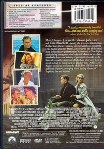| Matt Damon, Gwyneth Paltrow, Jude Law and Cate Banchett electrify the screen in the riveting thriller from Oscar-winning director Anthony Minghella ('The English Patient'). Matt Damon "gives one of the year's most extraordinary performances" ('Premiere') as Tom Ripley, a calculating young man who believes it's better to be a fake somebody and a real nobody. Opportunity knocks in the form of a wealthy American shipbuilder who hires Tom to travel to Italy to bring back his playboy son, Dickie (Law). Ripley worms his way into the idyllic lives of Dickie and his girlfriend (Paltrow), plunging into a daring scheme of duplicity, lies and murder. |