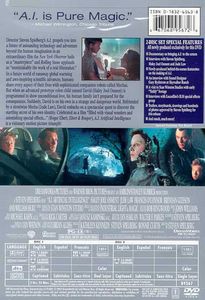 | Director Steven Spielberg's 'A.I.' propels you into a future of astounding technology and adventure beyond the human imagination in an extraordinary film the 'New York Observer' hails as a "masterpiece" and 'Rolling Stone' applauds as "unmistakably the work of a real filmmaker." In a future world of runaway global warming and awe-inspiring scientific advances, humans share every aspect of their lives with sophisticated companion robots called Mechas. But when an advanced prototype robot child named David (Haley Joel Osment) is programmed to show unconditional love, his family isn't prepared for the consequences. Suddenly, David is on his own in a strange and dangerous world. Befriended by a streetwise Mecha (Jude Law), David embarks on a spectacular quest to discover the startling secret of his own identity. Celebrated as a film "filled with visual wonders and astonishing special effects..." (Roger Ebert, 'Ebert & Roeper'), 'A.I. Artificial Intelligence' is a visionary motion picture triumph! |