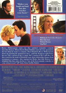 | Reese Witherspoon stars in the spirited romantic comedy 'Just Like Heaven'. When David (Mark Ruffalo) rents his new apartment, the last thing he wants is company. Then Elizabeth (Reese Witherspoon) shows up, insisting the apartment is hers...until she disappears right before his eyes. He's convinced she's a spirit. She's convinced she's still alive. As they search for the truth of Elizabeth's past, their relationship changes from resentment to romance. Also starring Jon Heder, 'Just Like Heaven' is a delightful film that critics declare is "one of the best romantic comedies to come along in years" (JP Sarni, 'Sirius Satellite Radio'). |