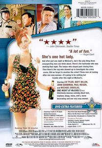 | She's one hot lady. And after just one night at McCool's, she's the only thing four unsuspecting men can think about. There's the bartender who was working that night. The lawyer who stayed past closing time. Then there's the cop who showed up to investigate the crime scene. Did we forget to mention the crime? Three men all lusting after one sexy woman--it's going to be nothing but trouble after this night at McCool's.'One Night at McCool's' is a hilariously raucous comedy about lust, mayhem, bingo, twins, dvd's, home decorating and one very sexy woman. |
