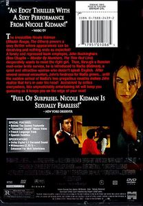 | The irresistible Nicole Kidman ('Moulin Rouge', 'The Others') powers a sexy thriller where appearances can be deceiving and nothing ends as expected! A lonely and repressed bank employee, John Buckingham (Ben Chaplin - 'Murder By Numbers', 'The Thin Red Line') desperately want to meet the right girl. Then through a Russian mail-order bride service, he is introduced to Nadia (Kidman), a quiet and attractive woman who doesn't speak English. After several sensual encounters, John's fondness for Nadia grows...until the sudden arrival of Nadia's two gregarious cousins makes John realize that he's in over his head! Acclaimed by critics everywhere, this unpredictably entertaining hit will keep you guessing as it keeps you on the edge of your seat! |