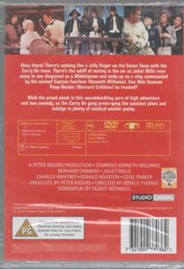 | Ahoy there! There's nothing like a Jolly Roger on the Seven Seas with the Carry On team. There's the whiff of mutiny in the air as Juliet Mills runs away to sea disguised as a Midshipman and ends up on a ship commanded by the wicked Captain Fearless (Kenneth Williams). Can Able Seaman Poop-Decker (Bernard Cribbins) be trusted?Walk the prank plank in this swashbuckling yarn of high adventure and low comedy, as the Carry On gang press-gang the sauciest jokes and indulge in plenty of nautical anchor panky. |