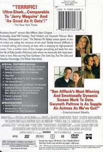 | Academy Award winners Ben Affleck (Best Original Screenplay, Good Will Hunting; Pearl Harbor) and Gwyneth Paltrow (Best Actress, Shakespeare in Love; The Talented Mr. Ripley) create sparks in the hit critics are calling the romance of the year! Buddy Amaral (Affleck) is a smooth-talking, skirt-chasing ad exec who is enjoying his high-powered career. Then, a sudden twist of fate changes everything and leads him into the life of Abby Janello (Paltrow), with whom he eventually falls head-over-heels in love. Also starring Tony Goldwyn (The Sixth Day, Kiss The Girls) and Natasha Henstridge (The Whole Nine Yards). |