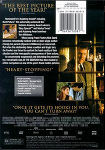 | Nominated for 5 Academy Awards® including Best Picture,* this universally acclaimed film features Academy Award® winners Sissy Spacek** and Marisa Tomei and Academy Award nominee Tom Wilkinson.When young Frank Fowler (Nick Stahl) becomes romantically involved with an older single mother (Tomei), his parents (Spacek and Wilkinson) are concerned. But when the relationship takes a sudden and tragic turn, the Fowlers are forced to confront the harsh reality of their situation and the inescapable consequences of their actions.An uncommonly suspenseful and disturbing film powered by a remarkable cast, 'In the Bedroom' has been hailed by critics everywhere as one of the year's finest motion pictures. |