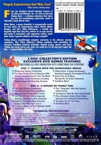 | From the Academy Award®-winning creators of 'Toy Story' and 'Monsters, Inc.', it's time to dive into 'Finding Nemo' -- a hilarious adventure that takes you into the breathtaking underwater world of Australia's Great Barrier Reef.When Nemo, a young clownfish, is unexpectedly carried far from his home, his overprotective father, Marlin (Albert Brooks), and Dory (Ellen DeGeneres), a friendly but forgetful regal blue tang fish, embark on an epic journey that leads to encounters with vegetarian sharks, surfer dude turtles, hypnotic jellyfish and hungry seagulls!'Finding Nemo's' breakthrough computer animation is the ultimate viewing experience. This 2-Disc Collector's Edition overflows with something for everyone, including exclusive animation, deleted scenes, games, and more! |