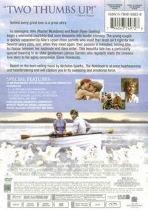 | As teenagers, Allie (Rachel McAdams) and Noah (Ryan Gosling) begin a whirlwind courtship that soon blossoms into tender intimacy. The young couple is quickly separated by Allie's upper-class parents who insist that Noah isn't right for her. Several years pass, and, when they meet again, their passion is rekindled, forcing Allie to choose between her soul mate and class order. This beautiful tale has a particularly special meaning to an older gentleman (James Garner) who regularly reads the timeless love story to his aging companion (Gena Rowlands).Based on the best-selling novel by Nicholas Sparks, 'The Notebook' is at once heartwarming and heartbreaking and will capture you in its sweeping and emotional force. |
