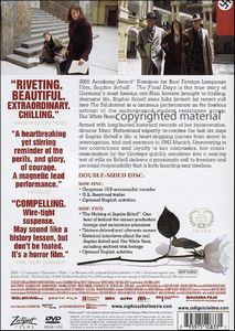U.S. Theatrical Trailer "The Making of Sophie Scholl" Deleted & Alternate Scenes Historical interviews about the real Sophie Scholl and The White Rose, including archival trial footage. |